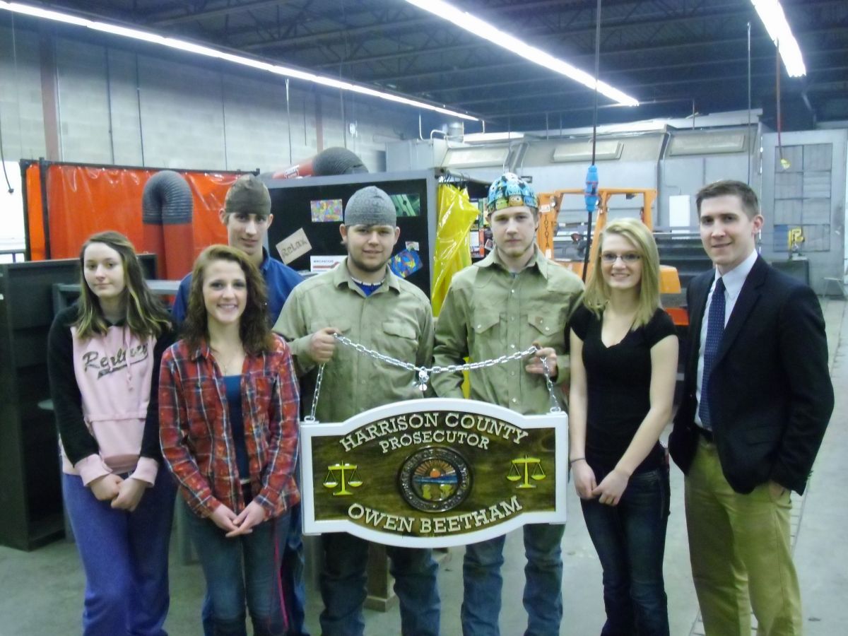 Several students from the Harrison Career Center were involved in the design and construction of a new sign for the Harrison County Prosecutor's office. Occupational Lab students were responsible for the ... Read Full Article