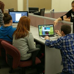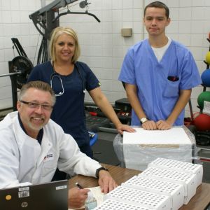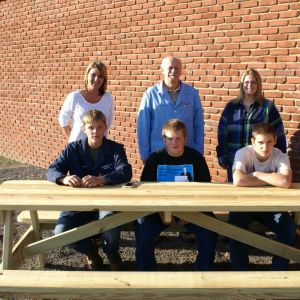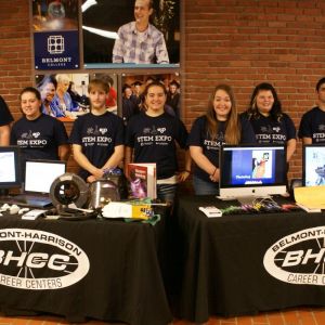 Standing, from left, are Nicolette Secrest, Dental Assisting instructor; Garrett Cox, Welding instructor; Michele Grant, Director of Career-Technical Education; Tom Walsh, Precision Machining instructor; Matt Shreve, Principal at Belmont Career Center; and Jason Donley, Assistant Treasurer/Budgetary.