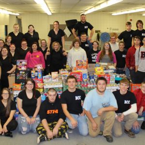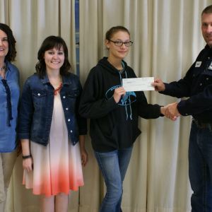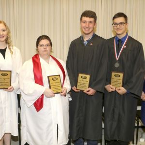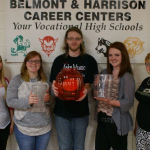 Standing, from left, are Nicolette Secrest, Dental Assisting instructor; Garrett Cox, Welding instructor; Michele Grant, Director of Career-Technical Education; Tom Walsh, Precision Machining instructor; Matt Shreve, Principal at Belmont Career Center; and Jason Donley, Assistant Treasurer/Budgetary.