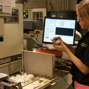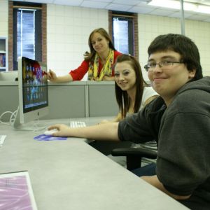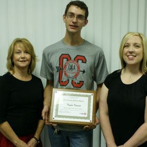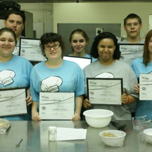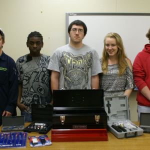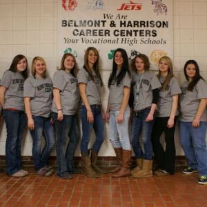 Standing, from left, are Nicolette Secrest, Dental Assisting instructor; Garrett Cox, Welding instructor; Michele Grant, Director of Career-Technical Education; Tom Walsh, Precision Machining instructor; Matt Shreve, Principal at Belmont Career Center; and Jason Donley, Assistant Treasurer/Budgetary.