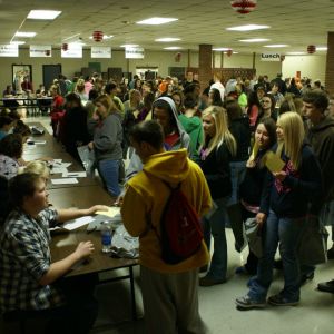 Standing, from left, are Nicolette Secrest, Dental Assisting instructor; Garrett Cox, Welding instructor; Michele Grant, Director of Career-Technical Education; Tom Walsh, Precision Machining instructor; Matt Shreve, Principal at Belmont Career Center; and Jason Donley, Assistant Treasurer/Budgetary.